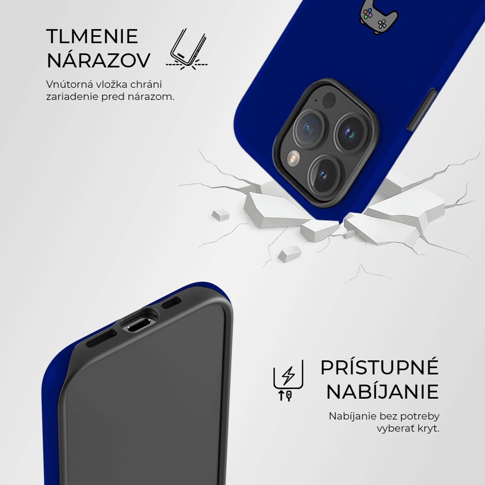 Kombinácia pružnej TPU vložky a pevnej PVC vrstvy spoľahlivo chráni mobil pred nárazmi, pádmi aj bežným opotrebovaním. Vnútorná čierna TPU vložka tlmí nárazy a zabezpečuje zvýšené hrany okolo displeja a kamery. Vonkajšia PVC vrstva s matným povrchom a kvalitnou potlačou odoláva škrabancom, vyblednutiu a zažltnutiu.